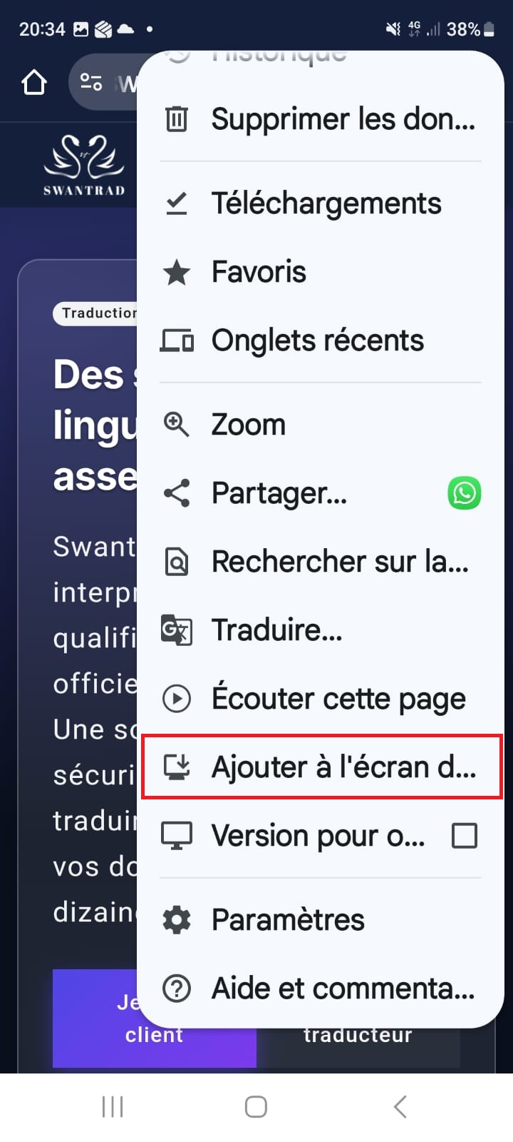 - Confirmez. L’icône Swantrad sera ajoutée à votre écran d’accueil.