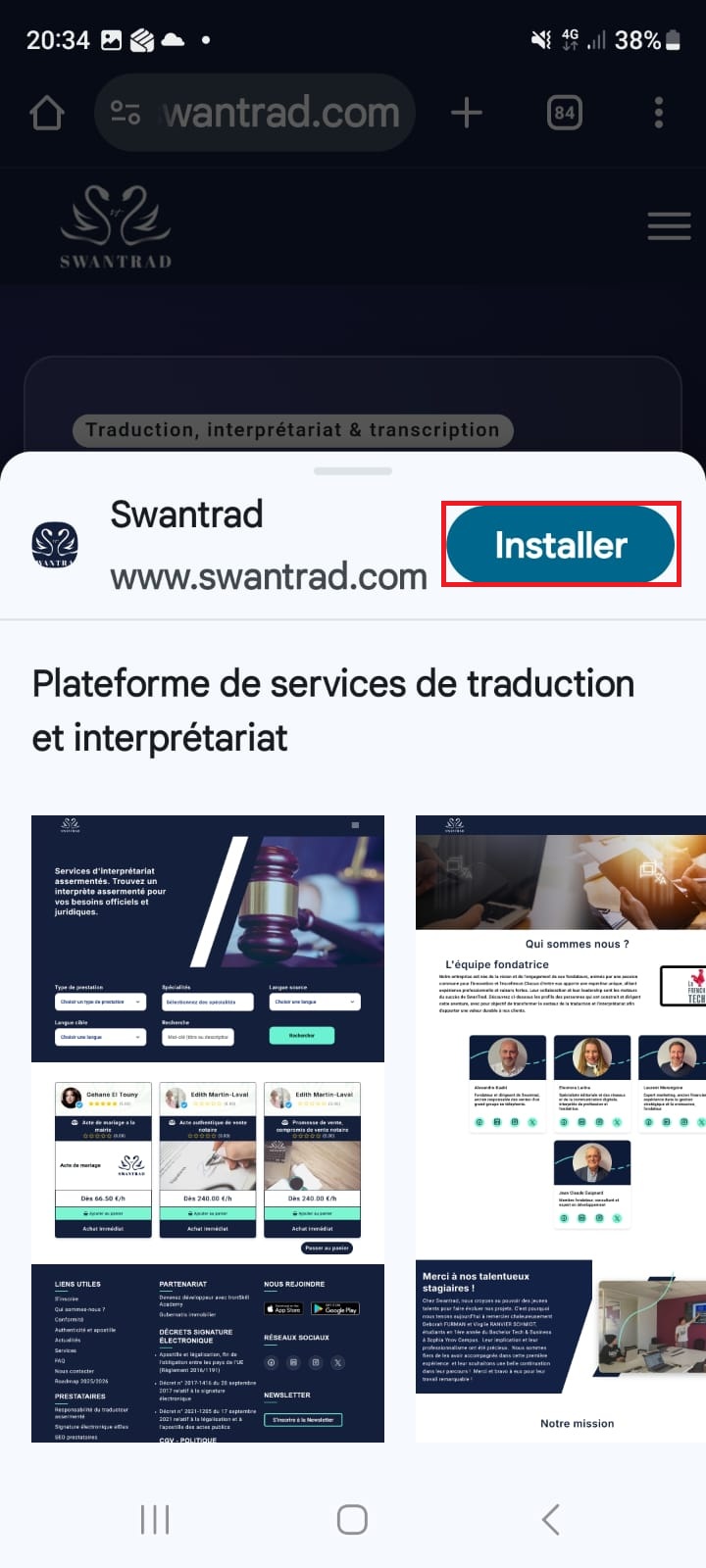 Swantrad est une application web progressive (PWA). Vous pouvez l’installer sur ordinateur et sur mobile pour un accès plus rapide, en plein écran, avec une icône sur votre écran d’accueil.